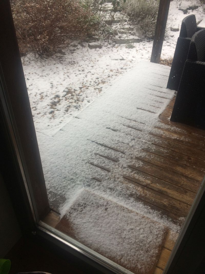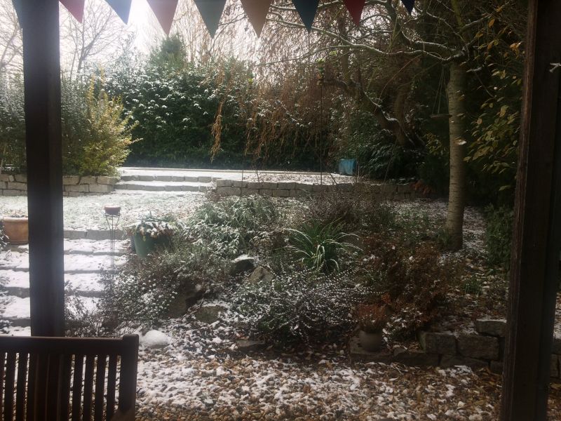 Sice sněží jenom trochu, ale je to hezký, když se na to člověk kouká z tepla domova.