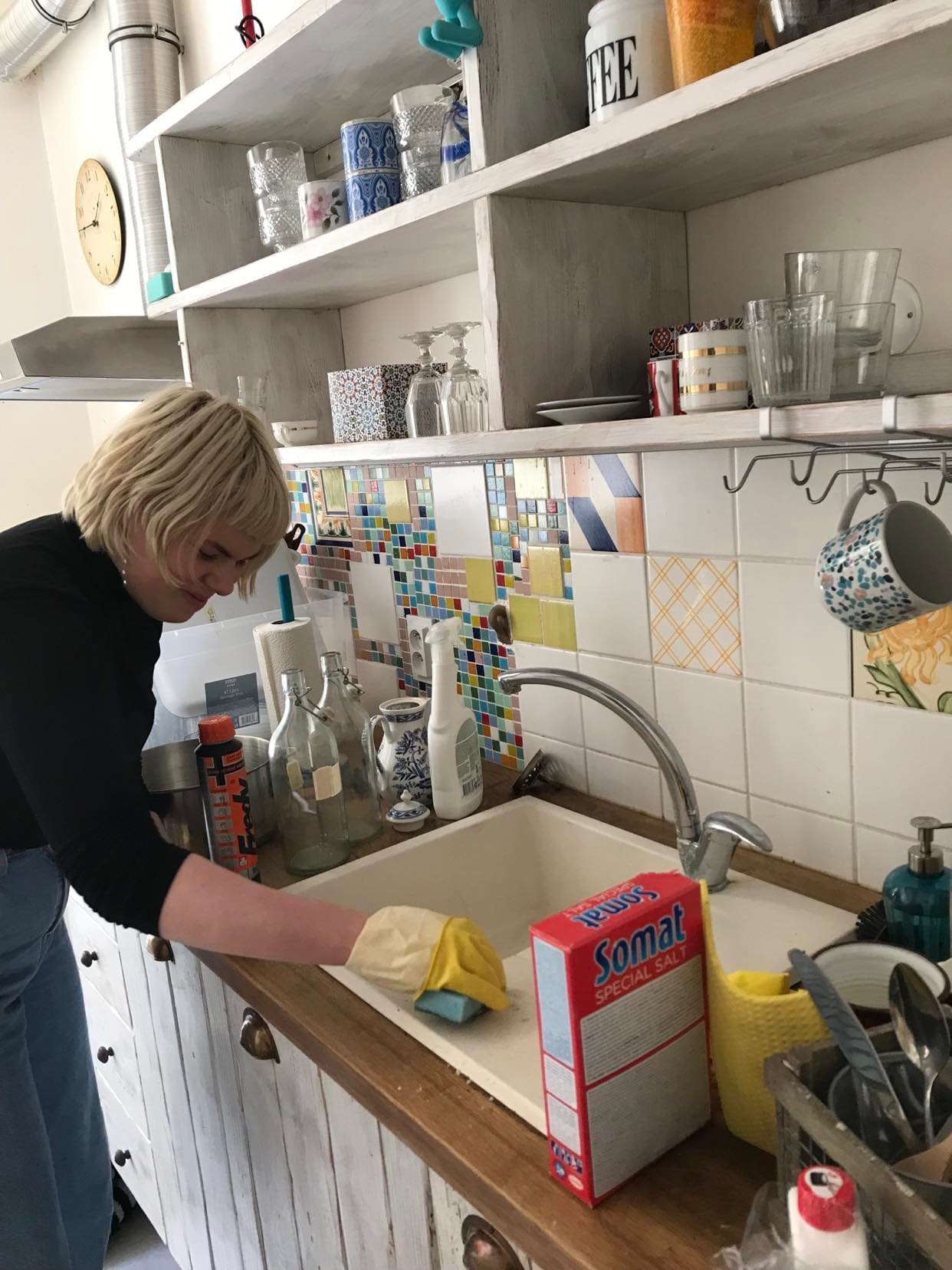 Tento týden škatulata. Dnes jsme přebírali náš holešovický vymazlený tiny byt od nájemníků, kteří v něm bydleli 3 roky.  Pozítří se do něj ze svého pronájmu přestěhuje Stela. Nepočítali jsme ovšem s tím, že zejména kuchyň a koupelna budou v tak zoufalém stavu. Špína. Myčka celou tu dobu asi nebyla čištěna, dtto pračka. Všechno bylo původně nové. Nájemníci byli fajn mladí inteligentní lidi, sportovci, naprosto bezproblémoví. Takže jsem předpokládala, že po sobě aspoň uklidí. Stela ve svém pronájmu musí všechno vydrhnout a měla dokonce i vymalovat. Ale náš byt musí projít nejdřív člověčí deratizací. Tenhle týden bude perný.