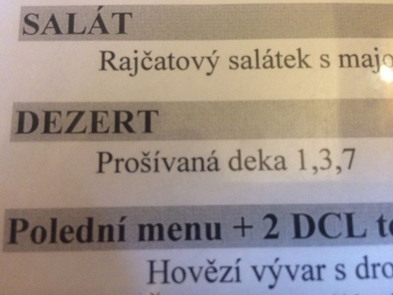Milá Lucie,moc ráda si tu čtu. Prošívaná deka bude určitě kakaová buchta s mřížkou z tvarohu my tomu říkáme propadlá.