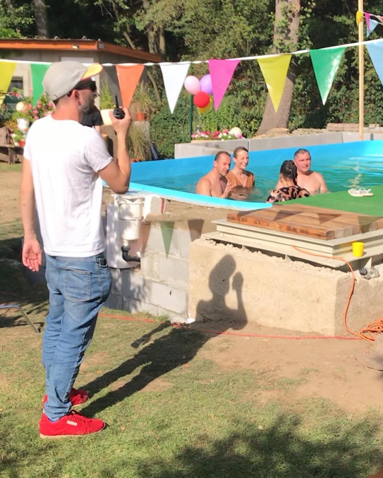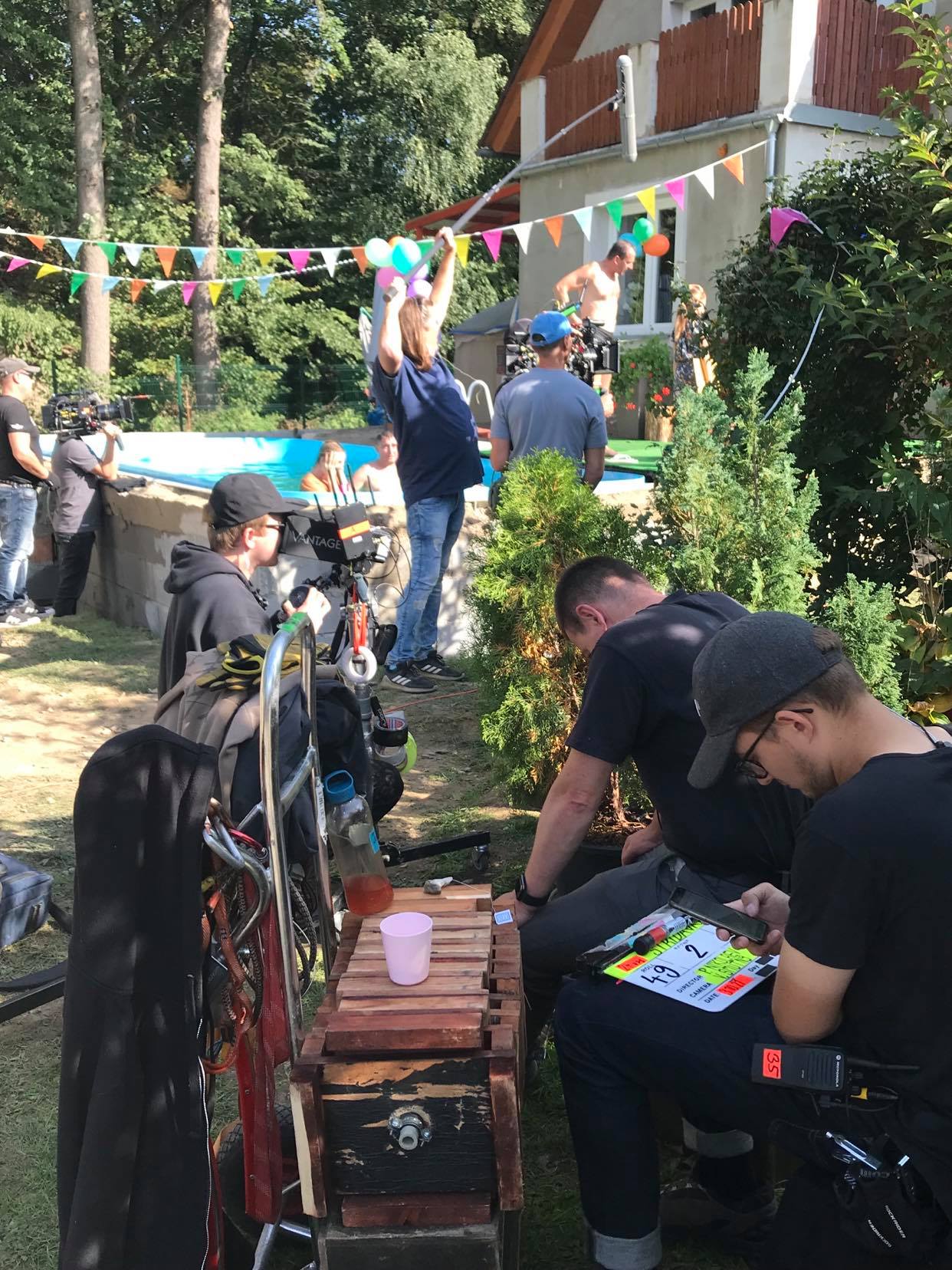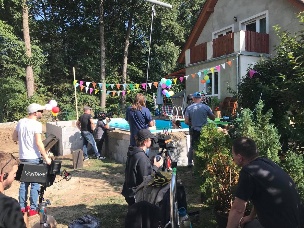 Včera jsem strávila den na natáčení své Střídavky. Trefila jsem se zrovna do točení scén v bazénu, kdy herci předstírají, že je venku 35°C a přitom bylo v osm ráno 12. Bazén se celou noc napouštěl horkou vodou, ale rychle chladnul, takže po čtyřech hodinách herci vylézali z vody úplně vylouhovaní. V přestávkách už ani nevylézali, aby nenastydli. Ve filmu se tahle akce sestříhá tak na 2-3 minuty.