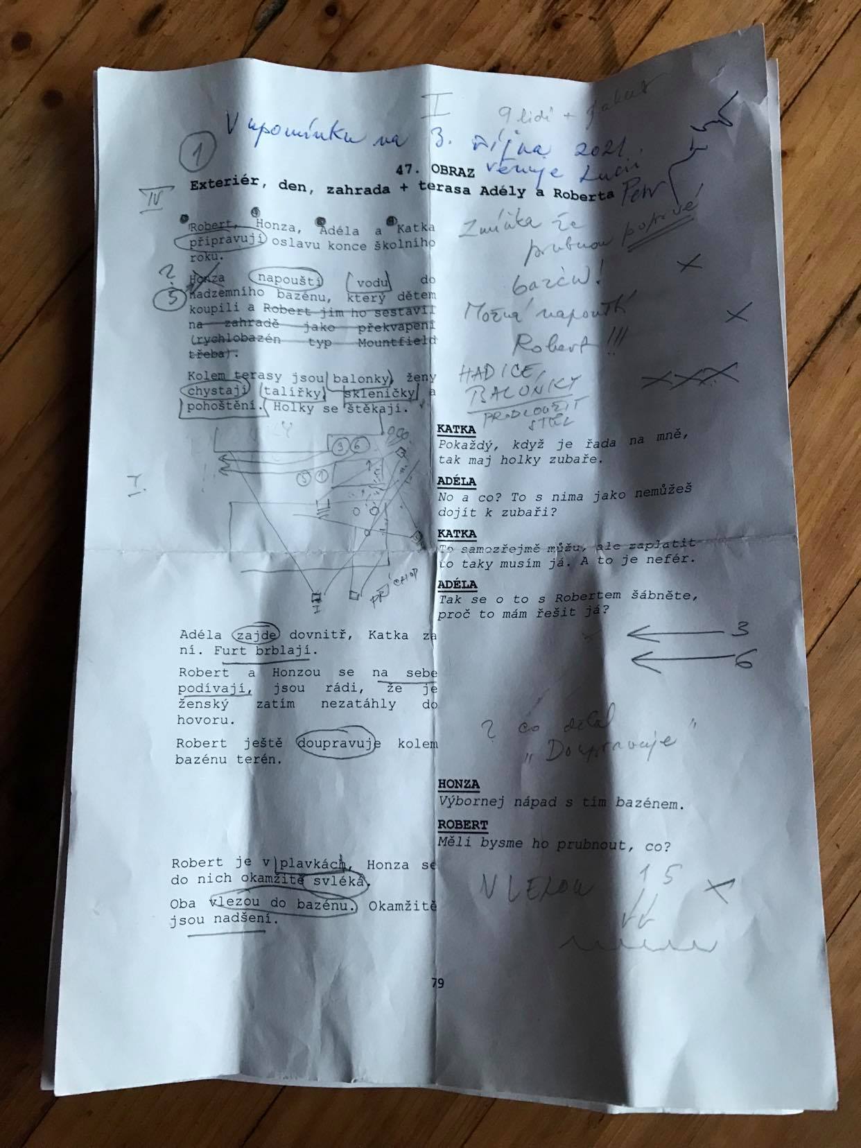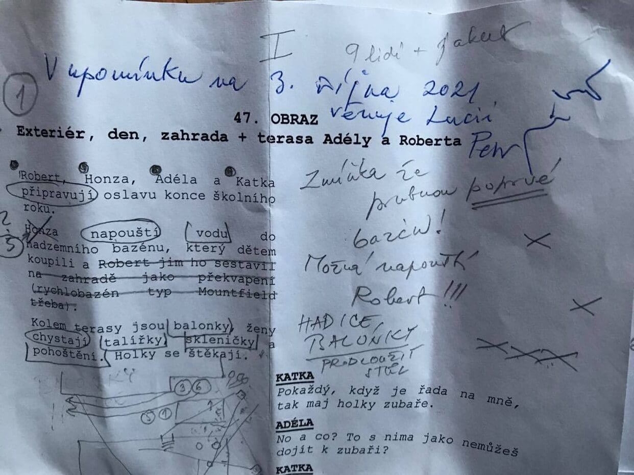 To si vždycky uvědomím, jak je jednoduchý něco napsat a pak navíc přihlížet, jak se desítky lidí lopotí kvůli pár větám v mým scénáři. Ale tyhle věty jsou pro příběh zásadní. V levnějším projektu by si je postavy řekly v obýváku na gauči, ale film je luxus. Tam se u toho můžou koupat a házet do vody.