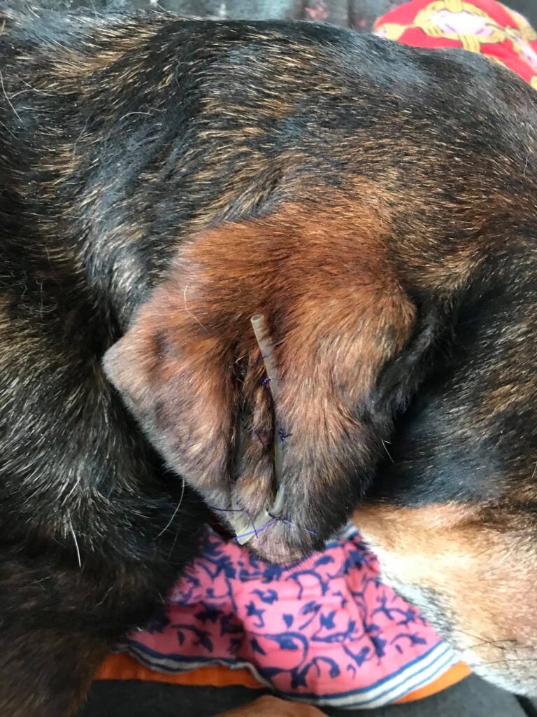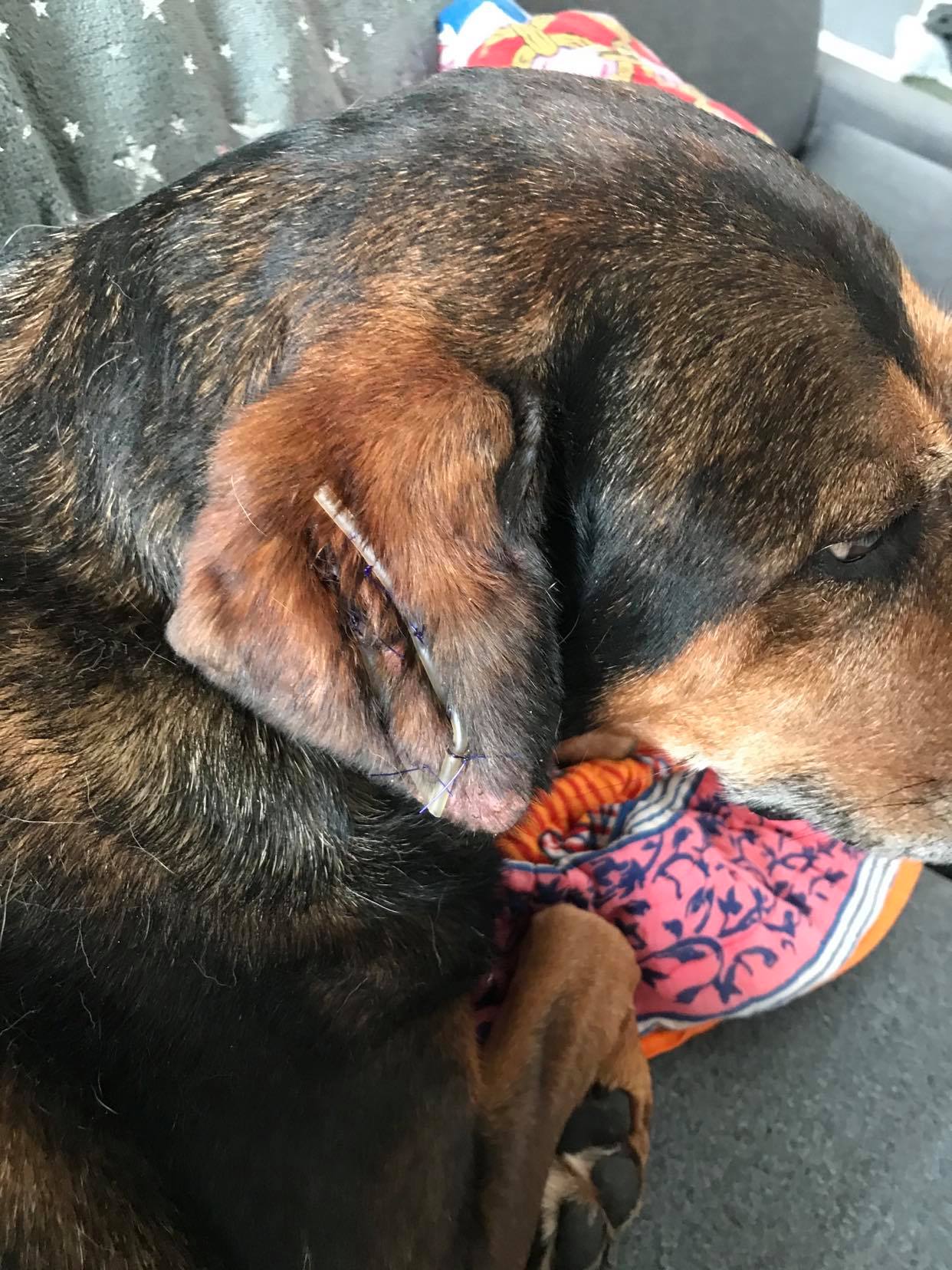 Testy na covid obsazené na několik dní, takže jsme se na ně dostali až dnes. Jsme šťastně negativní. Cherry po další operaci ucha, pan doktor jí tam všil svrchu i zevnitř trubičku, je to jeho vlastní vychytávka. Operaci jsem přihlížela. Člověk zvykne všemu (i pes).