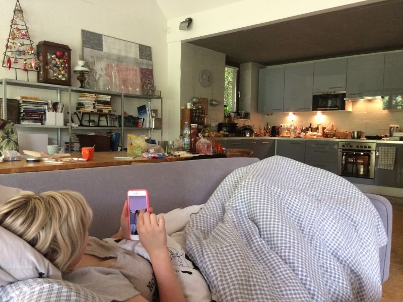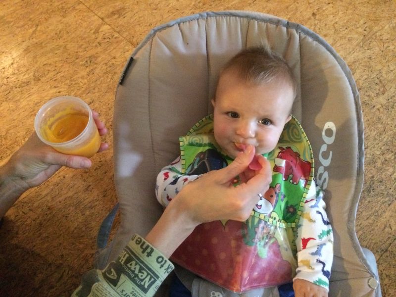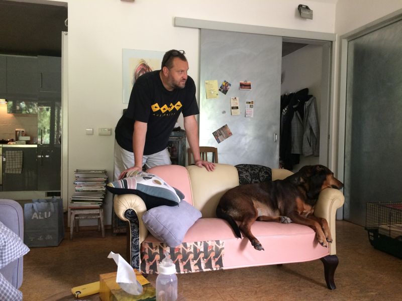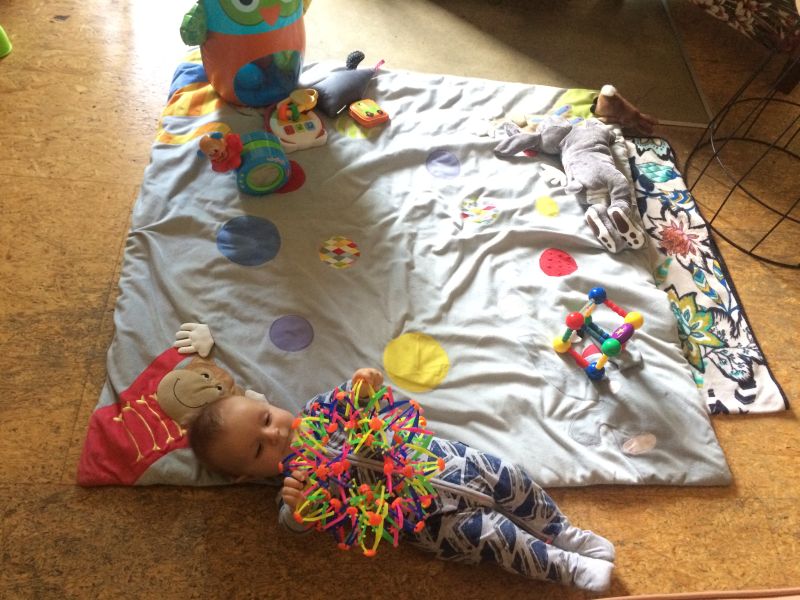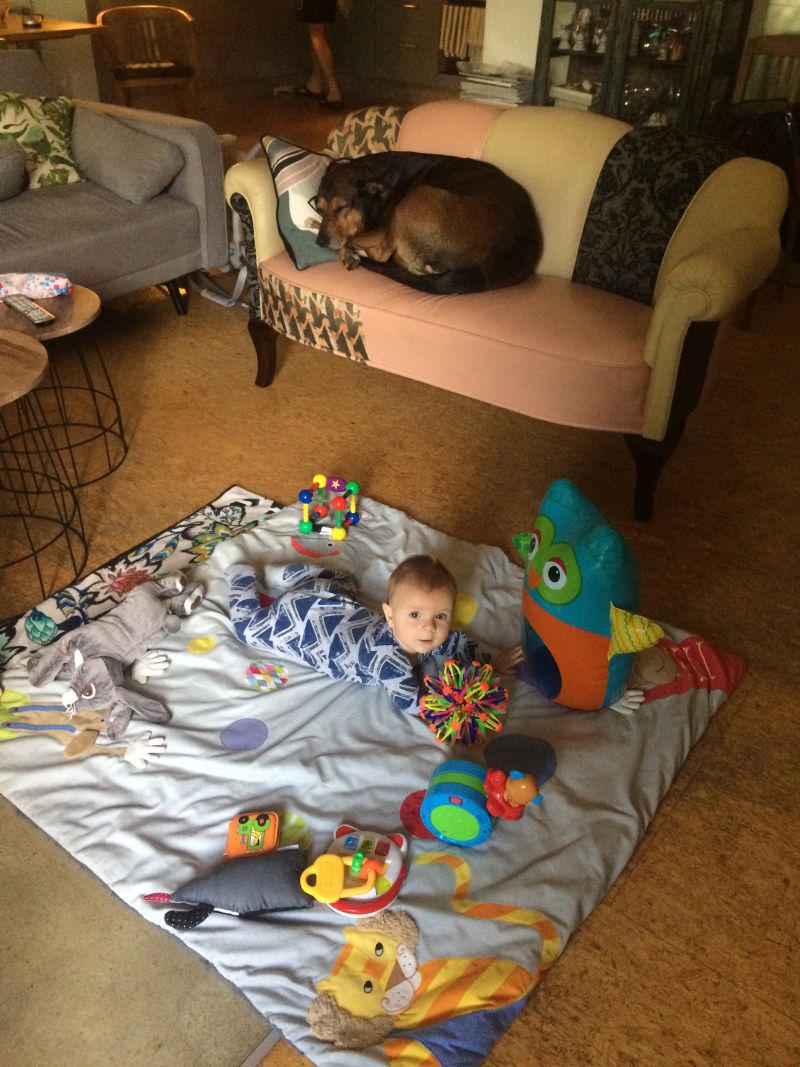 Ale všechny provozní problémy vždycky vyváží pozdní večerní čas, kdy Tobi konečně (na chvíli) odpadne. A my se pereme o místa u bedny.