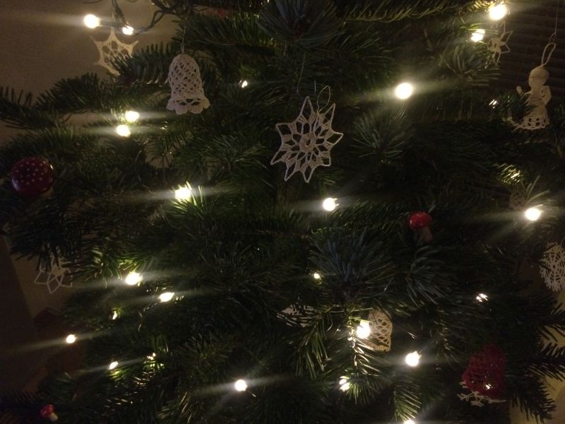 Krásný strom. Máme ho zdobený v podobném stylu,háčkované zvonky jsou stejné jako naše.:)Paráda.