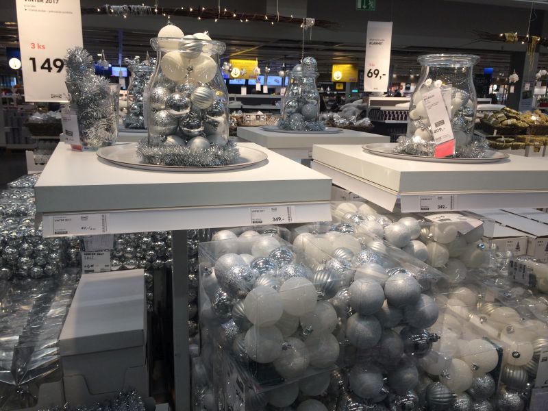 Pokud si chcete něco koupit, tak honem (nikoli prý o víkendu, to tam bývají hodinové fronty u pokladen). Před Vánoci totiž už bývá výběr minimální. Z dekorací se mi nejvíc líbily ty nejjednodušší, koupila jsem jen pár věcí do bytu, kde se letos hodlám vyřádit. Budeme tam mít 10 dní návštěvu z ciziny, tak jim to chci připravit a vyzdobit. Ale nechci, aby si české Vánoce hrály na severské. Takže zapojím hlavně své staré ozdoby.