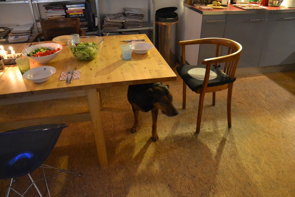 Zdobíme na Štědrý den, v průběhu zdobení vytahujeme ze stromu psychicky rozhozeného kocoura. Pes by do něj vlezl nejraději taky, ale nevejde se.