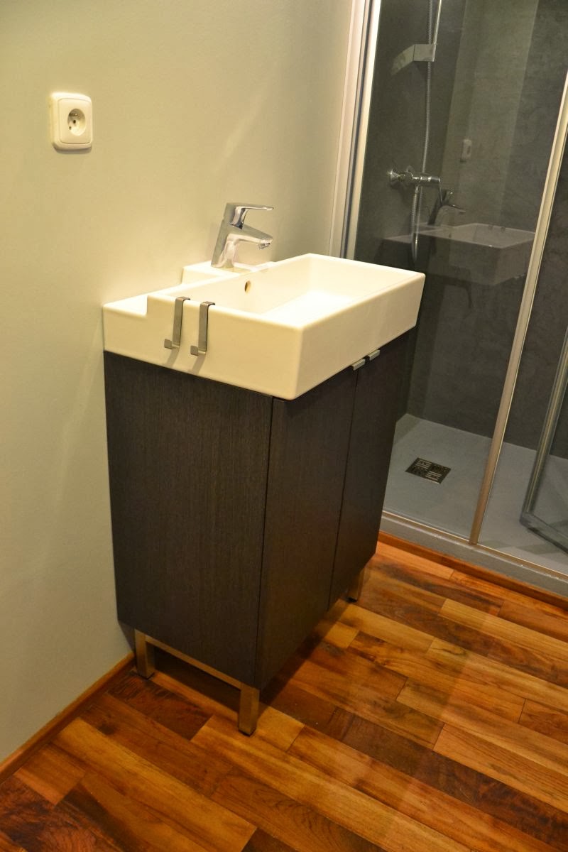Lucko myslím, že ten kontejner je fakt nutnej, je tam na něj akorát místo! Jinak je to velká krása, silikonům přeju všechno nej a ať se jim u vás líbí a zasychjí jak maj. Nezbylo vám trochu toho teaku? Bych ho asi nacpala do těch mezer nahoře na tom umyvadle, kdyby z toho teaku nějaký šikovný pan truhlář udělal "krabičku" a tu bys mohla buď použít jak se používá, dnem dolů a naplnit něčím. Teda něčím užitečným co by se tam normálně odkládalo. Já, jakožto střelený a zatím bez dalších člověků žijící člověk, bych tam dala třeba jemné malé oblázky a používala bych to na odkládání mýdla. A druhou bych narvala mechem. A nebo, esli se tam fakt cáká tak jak psaly některé čtenářky minule, tak by se ta krabička dala obrátit dnem vzhůru a vznikla by odkládací plocha a materiálové propojení s podlahou. A kdybych chtěla být uplný rebel, tak bych tu umyvadlovou ikeáckou skříňku hackla, natřením tabulovou barvou. Přijde mi k těm super dveřím a nátěru a světlu moc taková … jako panička s kabelkou Louis Vuitton na vandru 😉 … jako jde to, ale není to uplně to vono. Střechu Ti klidně vykoukám, ale ony se internetový ratingy nepočítají, nebo? Pěknou neděli!