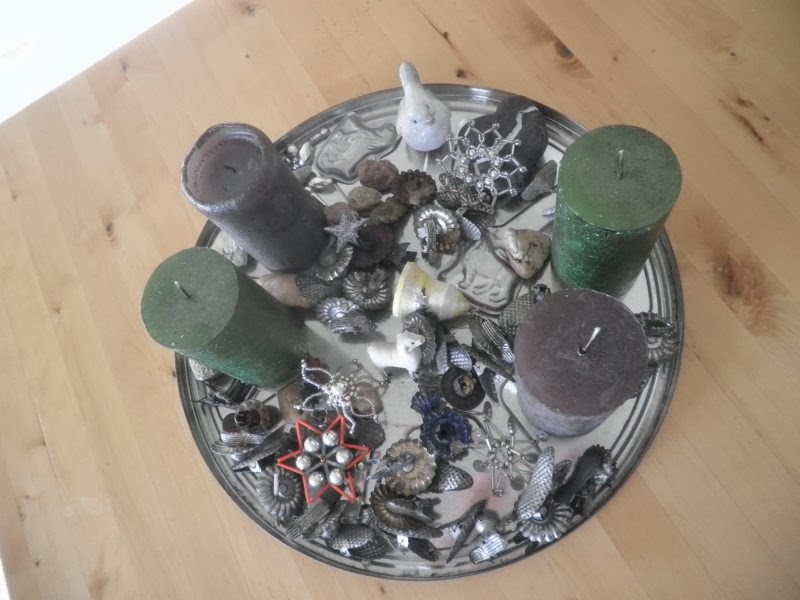 Když jsem v neděli narychlo spíchla adventní věnec, tak můj muž nebyl spokojen. Prý je stejný jako loni. Takže jsem vyměnila kameny za staré ozdoby a skřipce na svíčky. Což mimořádně splnilo svůj účel, protože každý, kdo sedí u stolu, si je prohlíží a krásně o nich beseduje. Což miluju. Těším se na další návštěvy.