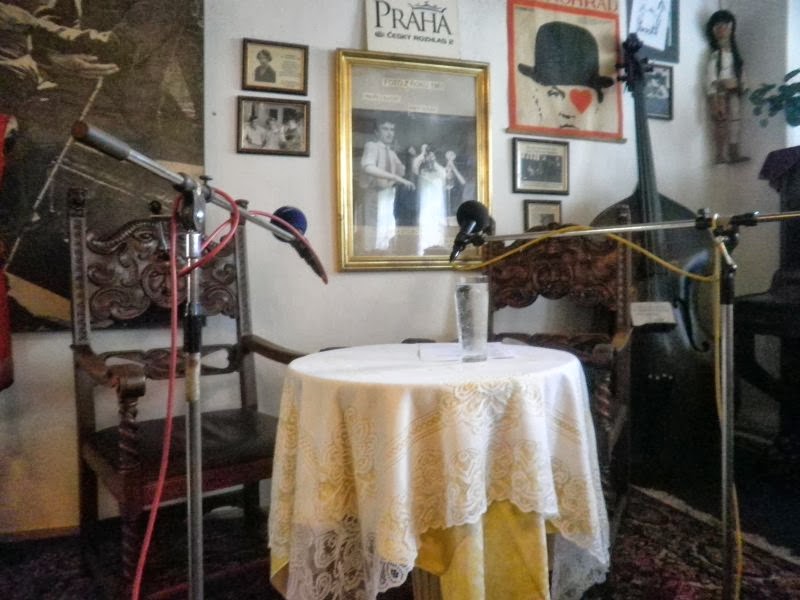 Ale stihli jsme zajít do Nostalgické myši na rozhlasové natáčení s Ondřejem Suchým. Tentokrát byl hostem Antonín Procházka. Hezkej chlap a vtipnej. To je hodně bodů najednou.