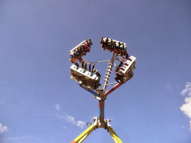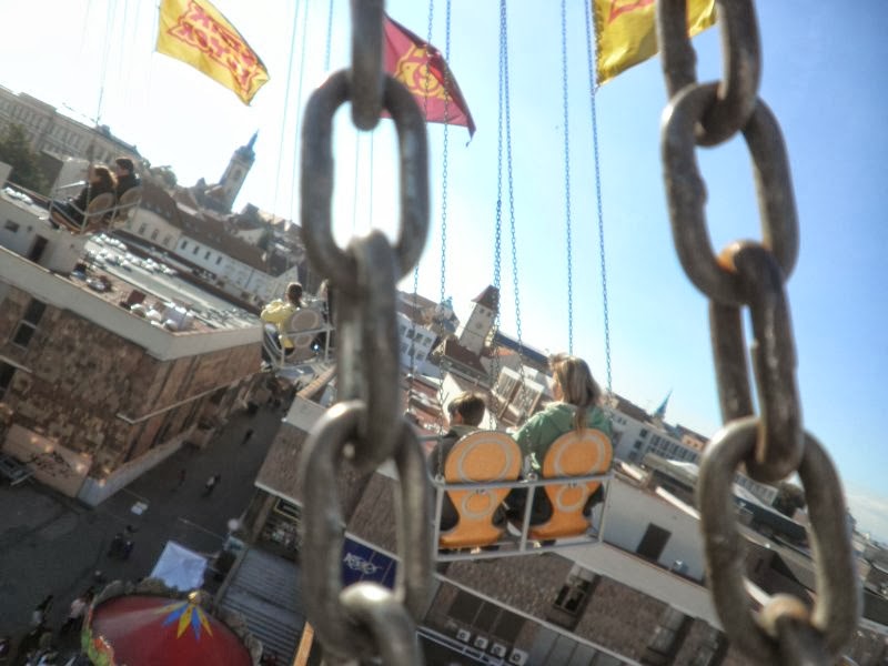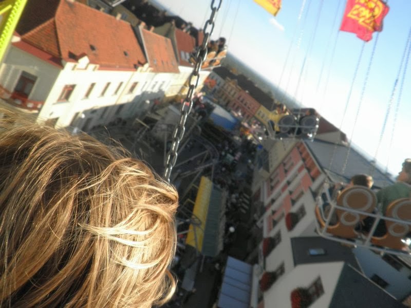 A taky jsem se na vinobraní svezla na nejvyšším řetízkovým kolotoči, na kterým jsem kdy letěla. Vyjede s vámi až nad střechy domů a tam vás pak teprve točí. Bála jsem se, že botama rozbiju střešní okno nějakýho bytu. Zvláštní pocit. Ale přesně tyhle zvláštní pocity k životu nutně potřebuju. Je to odreagování.