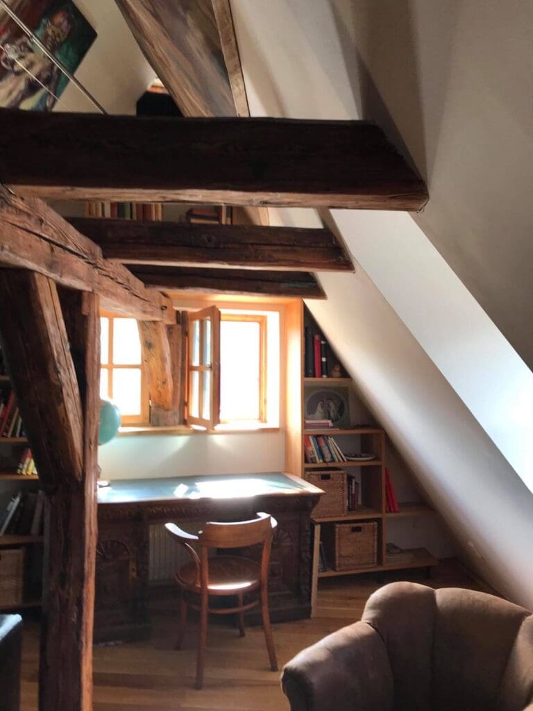 Byt je přenádhernej. A přiznané stropy až do špičky a obrazy na těch kosinách…. Príma nápad. J.