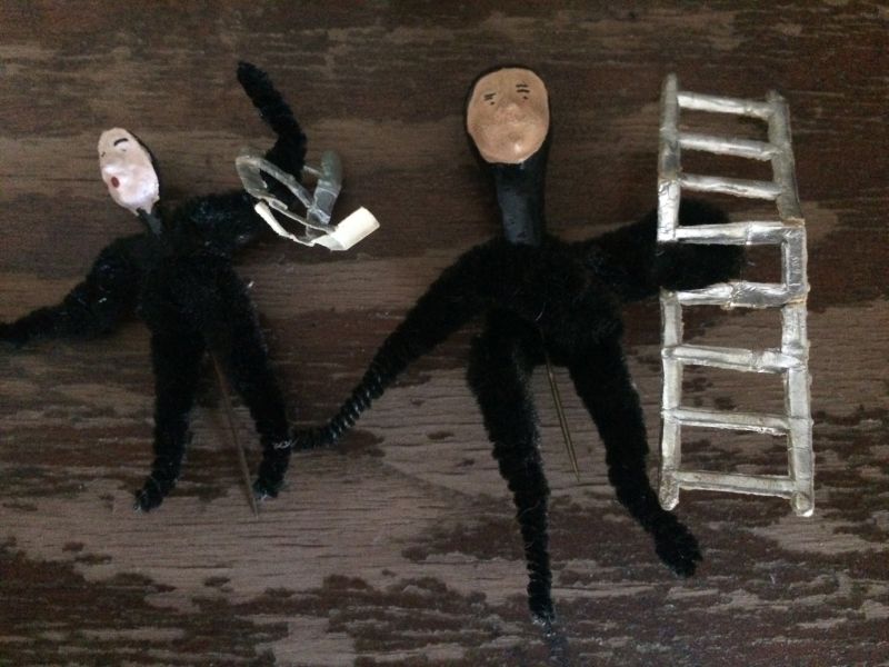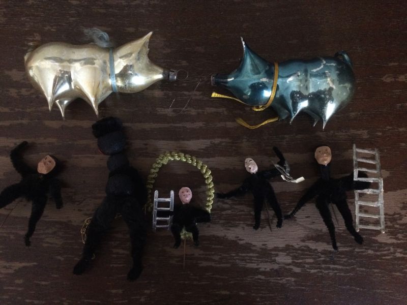 1. Katko, děkuju. Kvůli téhle ozdobě jsem koupila dalších 10 jiných ozdob, byla mezi nimi. Cena příznivá. Ano, je to leonský drátek. Kominíčci jsou hodně staří, mají obličeje. Náhodná koupě.