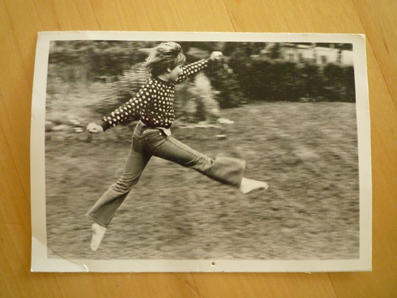 Na fotce mi bylo asi osm let. Mám dojem, že mě naprosto vystihuje. I přesto, že takovou roznožku v letu bych už rozhodně nevyšvihla. Ale takhle nějak se vidím pořád.