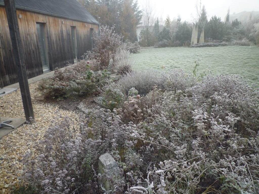 Jsem zmrzlá a zahrada taky. Ale té to vyloženě sluší. Od rána píšu a sem tam se vyběhnu jen ve svetru podívat ven. Probrat se a nabrat energii. Poslední dny jsou hektické, zítra ve čtyři ráno vezeme Kryštofa do Vídně na letiště. Ještě nemá ani zabaleno a zdaleka všechno zařízeno. Dneska to bude dlouhá noc.