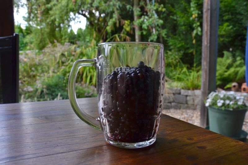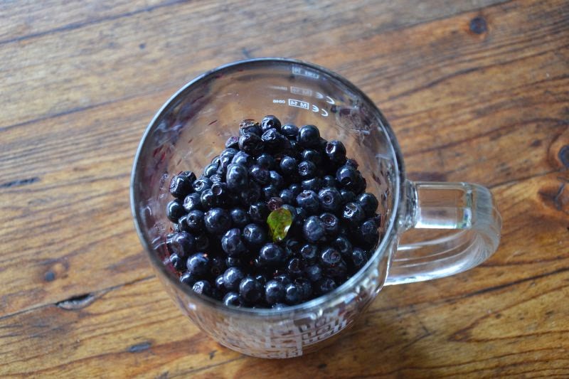Minulý týden jsme dělali borůvkový s drobenkou podle obdobného receptu z prvního příspěvku a byl mňam, a pak taky zmrzlinu (rozmixované borůvky se smetanou a dvěma žloutky vyšlehanými s cukrem), tu před chvílí dojedla naše maličká, fialová až za ušima.