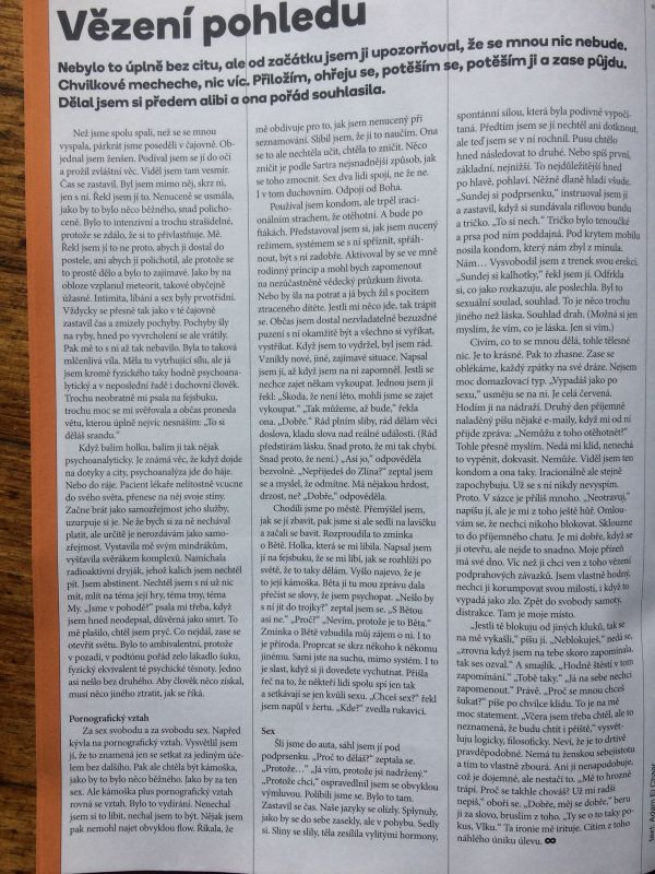 1. Kupuju každý měsíc do galerie 8 výtisků. A rozdávám. Článek vězení pohledu je skvělý vhled do dnešní generace mladých mužů.