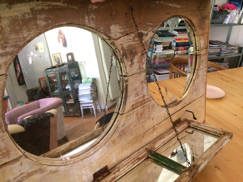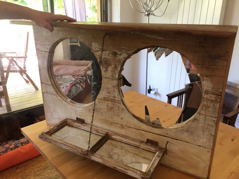 Myčák ještě máme, ale právě už bez těch děr, jen jako skříňku na pánve a pekáče. Nakonec to zrcadlo bude původem z toho našeho myčáku… :- ))